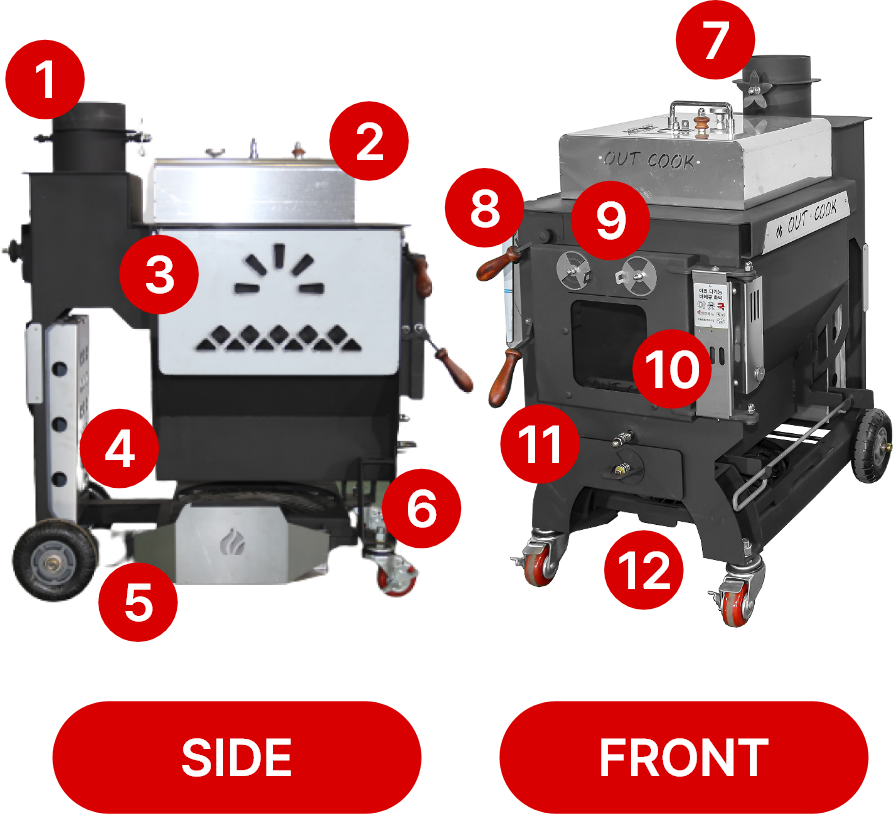 When using an outcook, if you raise the chimney more than 1m, more than 80% of the smoke and smell generated when meat fat drips and burns will be discharged through the chimney, allowing for a more comfortable cooking experience.
