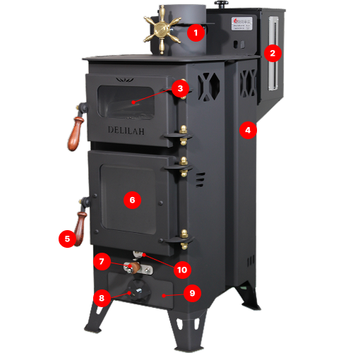 화력조절 및 밖에서 들려오는 역풍을 차단하면서도 난로의 멋을 살려주는 배기댐퍼가 상단부에 장착되어 있습니다.