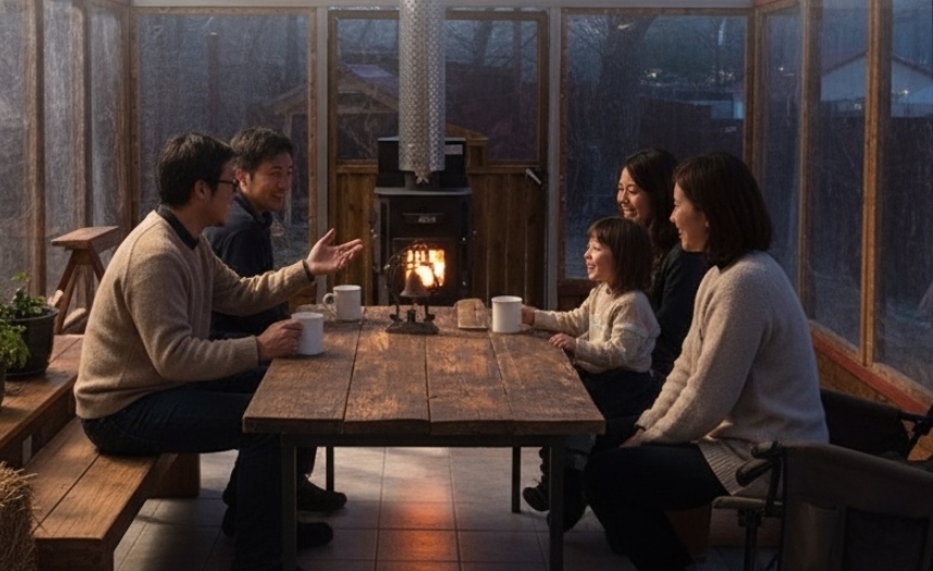 12시간 지속난방이 가능한 펠렛난로가 있는지 주변을 둘러보세요.