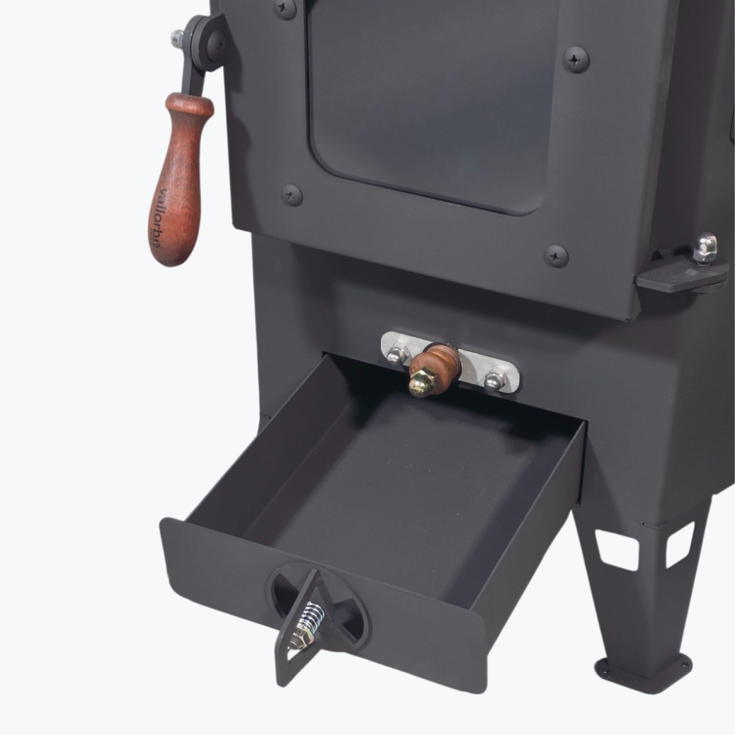 상단 댐퍼로 화력과 역풍을 제어하고, 나무 손잡이로 화상 걱정 없이 안전하게 사용할 수 있습니다.