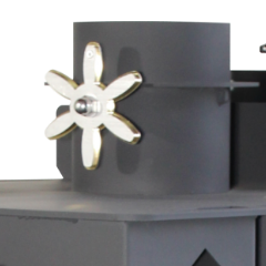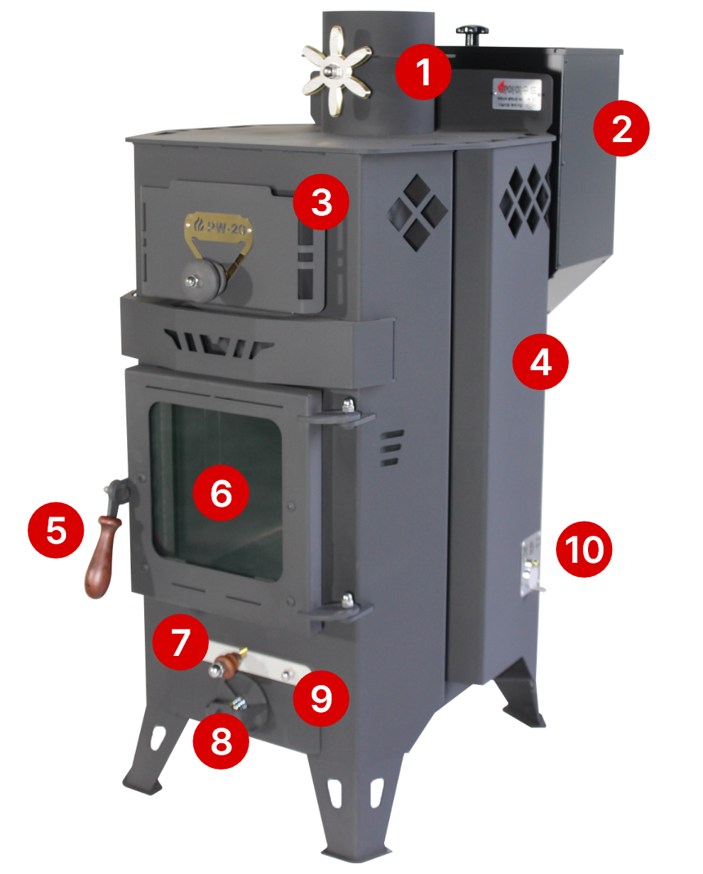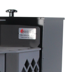 화력조절 및 밖에서 들려오는 역풍을 차단하면서도 난로의 멋을 살려주는 배기댐퍼가 상단부에 장착되어 있습니다.