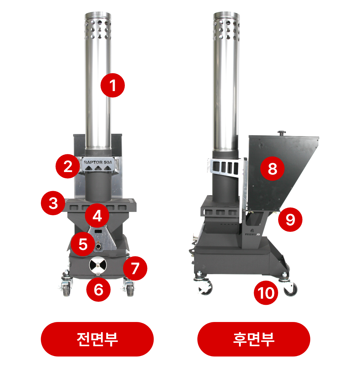 이동식 펠렛난로 ‘랩터’ 역시 보이지는 않지만 미세한 가스 및 분진이 나옵니다.