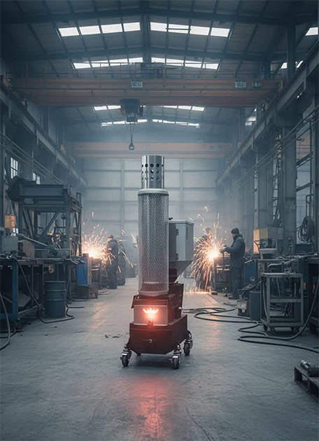 고정으로 연통을 설치하지 않는 이동식으로 내가 원하는 장소 어디에나 자유롭게 사용이 가능합니다. 바퀴로 이동하므로 사용 중에도 쉽게 이동이 가능합니다.