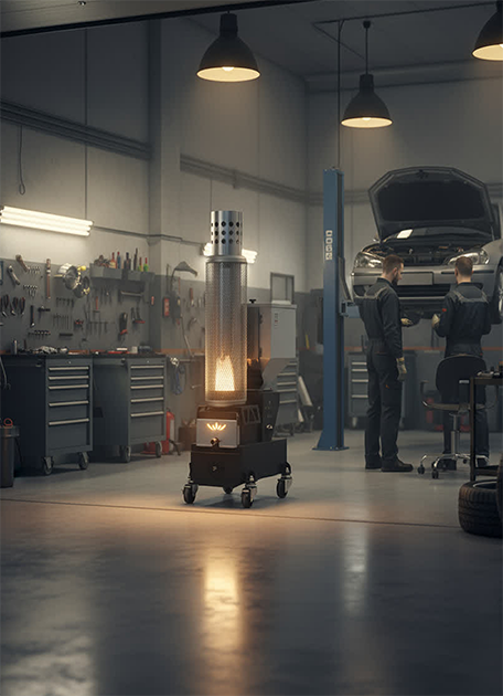 - 일반적으로 사람이 생활하고 식사를 하는 공간에서는 연통 설치를 해야하며 해당 제품은 공장, 창고 등 작업 공간/옥외 휴게 공간,