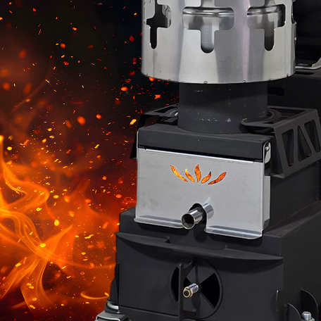 집진과 방열기능이 강화된 열교환부에 적용되어 더욱 강력한 화력의 간편한 이동식 펠렛난로