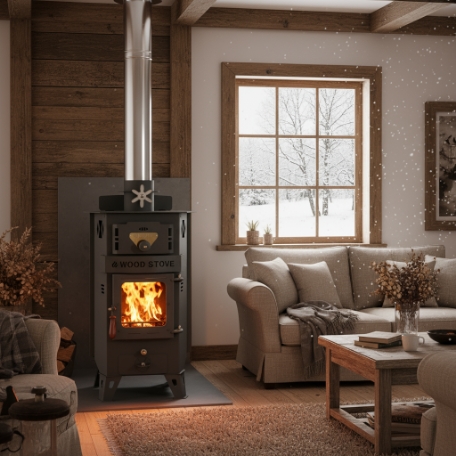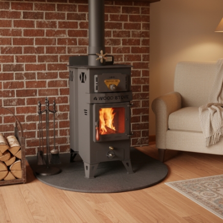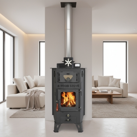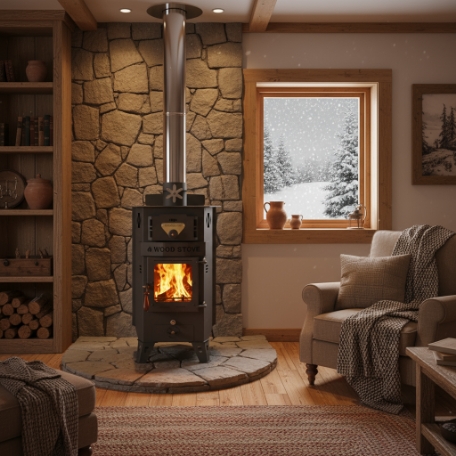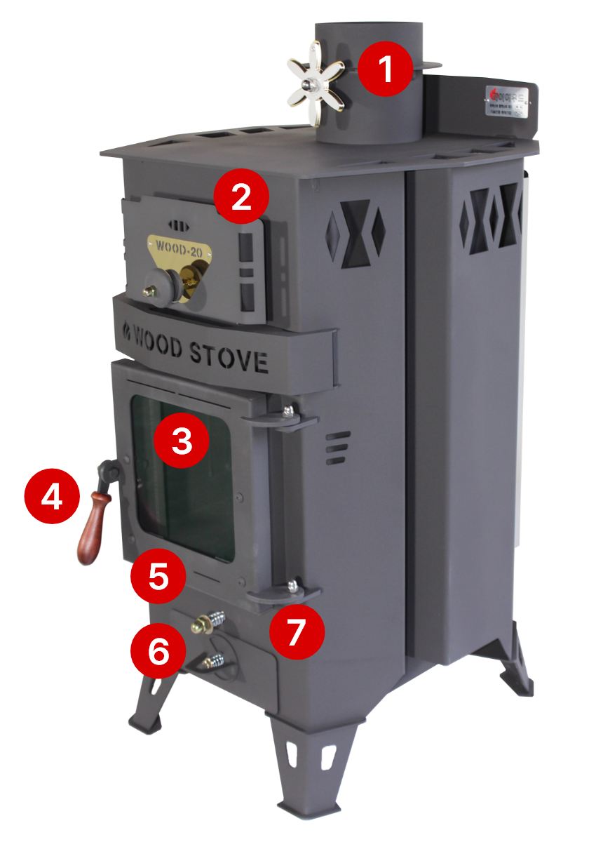 화력조절 및 밖에서 들려오는 역풍을 차단하면서도 난로의 멋을 살려주는 배기댐퍼가 상단부에 장착되어 있습니다.